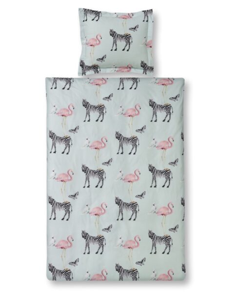 Dierenprints zijn terug van weggeweest en ook in de kinderkamer zijn ze hartstikke hip! Daarom is het Zebra dekbedovertrek van Vandyck een favoriet. De print bestaat uit verschillende wilde dieren en is herhalend waardoor er een trendy uiterlijk ontstaat. De achtergrond heeft een lichtblauwe kleur voor een rustige uitstraling.