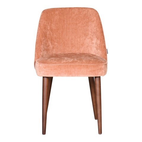 De Studio Siena stoel in perzikkleur geeft jouw eethoek een trendy look. Door de frisse velvet bekleding krijgt het item een fris uiterlijk. De stoel is voorzien van conische poten, welke het geheel een retro touch geven. Met de kuipzitting zit de stoel heerlijk. Extra informatie: * Materiaal stof * Kleur Eros perzik * Houten poot in de kleur walnoot * In diverse kleuren stof en leer leverbaar * Keuze uit diverse kleuren poten